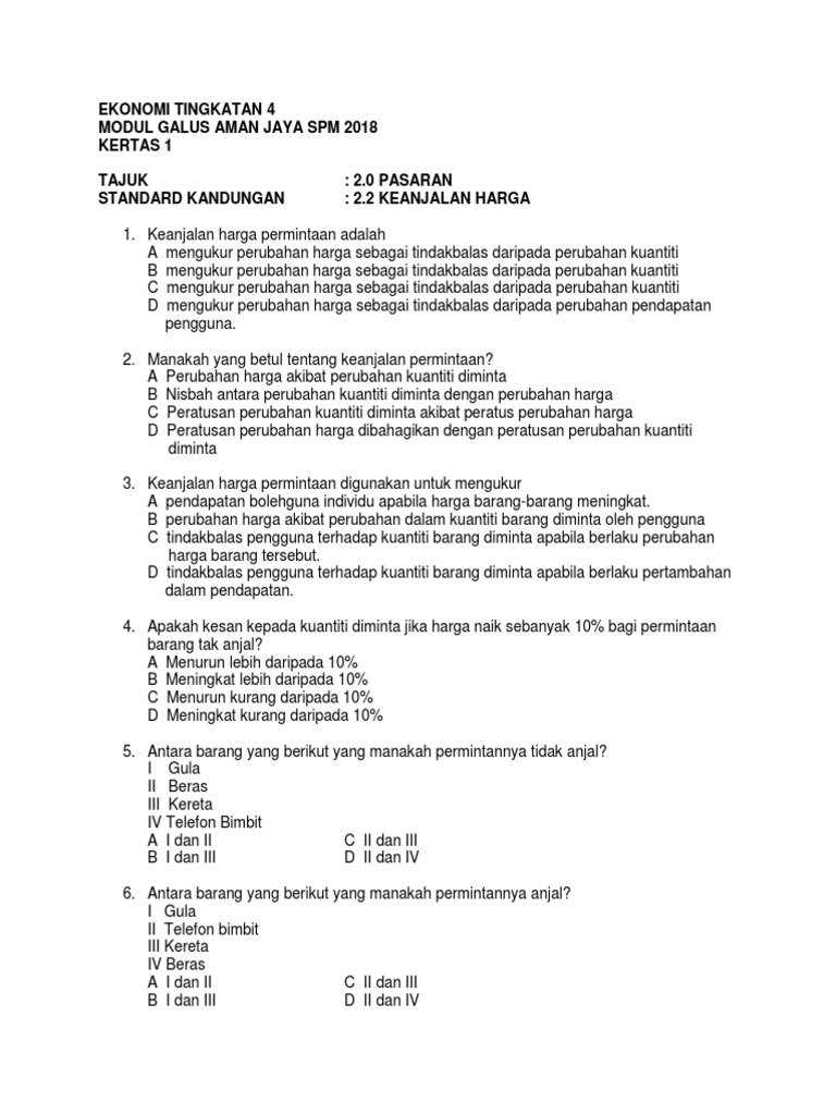 Kertas Soalan Peperiksaan Sebenar Spm Ekonomi 2018 2019 Lazada