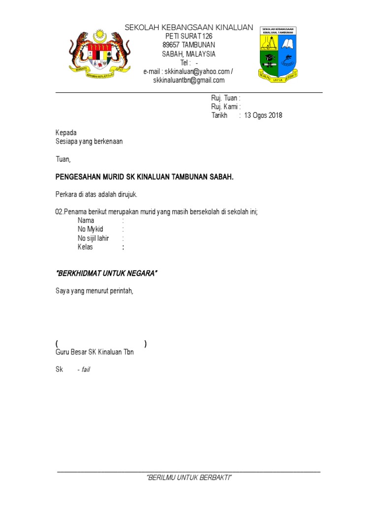 Sk Telok Bahang Contoh Surat Pengesahan Tahun 1 1 Facebook